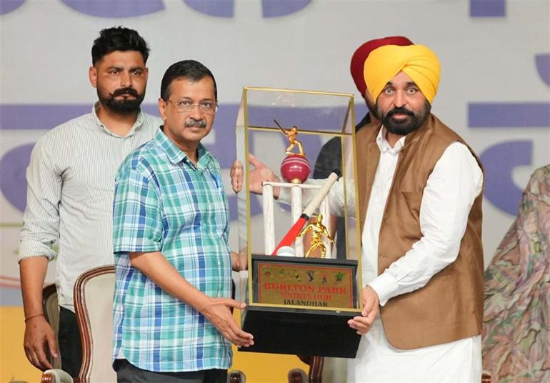 ਜਲੰਧਰ/ਚੰਡੀਗੜ੍ਹ : ਪੰਜਾਬ ਦੇ ਮੁੱਖ ਮੰਤਰੀ ਭਗਵੰਤ ਮਾਨ ਅਤੇ ਦਿੱਲੀ ਦੇ ਸਾਬਕਾ ਮੁੱਖ ਮੰਤਰੀ ਅਰਵਿੰਦ ਕੇਜਰੀਵਾਲ ਨੇ 'ਯੁੱਧ ਨਸ਼ਿਆਂ ਵਿਰੁੱਧ' ਮੁਹਿੰਮ ਤਹਿਤ ਖੇਡਾਂ ਨੂੰ ਹੱਲਾਸ਼ੇਰੀ ਦੇ ਕੇ ਨਸ਼ਿਆਂ ਖ਼ਿਲਾਫ਼ ਕਾਰਵਾਈ ਨੂੰ ਤੇਜ਼ ਕਰਨ ਦਾ ਐਲਾਨ ਕੀਤਾ। ਜਲੰਧਰ ਦਾ ਬਰਲਟਨ ਪਾਰਕ ਸਪੋਰਟਸ ਹੱਬ, ਜੋ ਲਗਭਗ 78 ਕਰੋੜ ਰੁਪਏ ਦੀ ਲਾਗਤ ਨਾਲ ਵਿਕਸਿਤ ਹੋਣ ਵਾਲਾ ਇਕ ਮਹੱਤਵਪੂਰਨ ਪ੍ਰਾਜੈਕਟ ਹੈ, ਦੀ ਨੀਂਹ ਰੱਖਣ ਤੋਂ ਬਾਅਦ ਸਭਾ ਨੂੰ ਸੰਬੋਧਿਤ ਕਰਦਿਆਂ ਮੁੱਖ ਮਹਿਮਾਨ ਅਰਵਿੰਦ ਕੇਜਰੀਵਾਲ ਨੇ ਇਸ ਨੂੰ ਇਤਿਹਾਸਕ ਦਿਨ ਦੱਸਿਆ। ਉਨ੍ਹਾਂ ਕਿਹਾ ਕਿ ਇਹ ਪਹਿਲ ਹਜ਼ਾਰਾਂ ਲੋਕਾਂ ਨੂੰ ਖੇਡਾਂ ਵਿਚ ਸ਼ਾਮਲ ਹੋਣ ਅਤੇ ਸਿਹਤਮੰਦ ਜੀਵਨਸ਼ੈਲੀ ਬਣਾਈ ਰੱਖਣ ਦੇ ਮੌਕੇ ਪ੍ਰਦਾਨ ਕਰੇਗੀ। ਇਹ ਦੇਸ਼ ਦਾ ਆਪਣੀ ਤਰ੍ਹਾਂ ਦਾ ਪਹਿਲਾ ਖੇਡ ਕੰਪਲੈਕਸ ਇਕ ਸਾਲ ਵਿਚ ਪੂਰਾ ਹੋ ਜਾਵੇਗਾ।