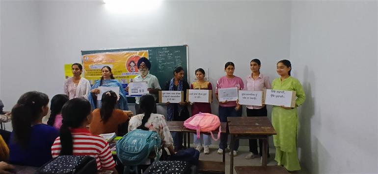 ਨਵਾਸ਼ਹਿਰ (ਮਨੋਰੰਜਨ ਕਾਲੀਆ) : ਬੀ ਐਲ ਐਮ ਗਰਲਜ਼ ਕਾਲਜ ਵਿੱਚ ਅੱਜ ਸਵੱਛ ਭਾਰਤ ਮਿਸ਼ਨ ਦੇ ਤਹਿਤ ਸਰਦਾਰ ਜਸਵਿੰਦਰ ਸਿੰਘ ਸੀ.ਐਫ, ਲੋਕਲ ਬਾਡੀਜ਼, ਨਵਾਂਸ਼ਹਿਰ ਜੀ ਵੱਲੋਂ ਵਿਦਿਆਰਥਨਾ ਨੂੰ ਇੱਕ ਲੈਕਚਰ ਦਿੱਤਾ ਗਿਆ ਜਿਸ ਵਿੱਚ ਉਹਨਾਂ ਨੇ ਵਿਦਿਆਰਥਨਾ ਨੂੰ ਸਫਾਈ ਅਪਣਾਓ ਅਤੇ ਬਿਮਾਰੀ ਭਜਾਓ ਦਾ ਸੁਨੇਹਾ ਦਿੱਤਾ | ਉਹਨਾਂ ਦੱਸਿਆ ਕਿ ਸਹੀ ਤਰੀਕੇ ਨਾਲ ਹੈਂਡ ਵਾਸ਼ ਕਰਨਾ ਚਾਹੀਦਾ ਹੈ  ਸਫਾਈ ਨਾ ਰੱਖਣ ਕਾਰਨ ਰੋਜ਼ਾਨਾ ਜੀਵਨ ਵਿੱਚ ਬੱਚੇ ਬਹੁਤ ਸਾਰੀਆਂ ਬਿਮਾਰੀਆਂ ਦੇ ਸ਼ਿਕਾਰ ਹੋ ਜਾਂਦੇ ਹਨ | ਕਈ ਤਰ੍ਹਾਂ ਦੀ ਜਰਾਸੀਨ ਪੇਟ ਵਿੱਚ ਚਲੇ ਜਾਂਦੇ ਹਨ ਅਤੇ ਕੀੜਿਆਂ ਦਾ ਰੂਪ ਲੈ ਲੈਂਦੇ ਹਨ ਉਹਨੇ ਦੱਸਿਆ ਕਿ ਆਪਣੇ ਆਸ ਪਾਸ ਦੇ ਵਾਤਾਵਰਨ ਨੂੰ ਸਾਫ ਰੱਖਣਾ ਵੀ ਸਾਡੀ ਸਭ ਦੀ ਖੁਦ ਦੀ ਜਿੰਮੇਵਾਰੀ ਹੈ ਪਲਾਸਟਿਕ ਬੈਗ ਦਾ ਇਸਤੇਮਾਲ ਘਟਾਉਣਾ ਚਾਹੀਦਾ ਹੈ ਪਲਾਸਟਿਕ ਦੇ ਬੈਗ ਵਿੱਚ ਖਾਣ ਪੀਣ ਵਾਲੀਆਂ ਚੀਜ਼ਾਂ ਰੱਖਣ ਨਾਲ ਬਹੁਤ ਸਾਰਾ ਪਲਾਸਟਿਕ ਸਾਡੇ ਅੰਦਰ ਚਲਾ ਜਾਂਦਾ ਹੈ | ਇਸ ਦੇ ਨਾਲ ਹੀ ਉਹਨਾਂ ਦੱਸਿਆ ਕਿ ਵਾਤਾਵਰਣ ਨੂੰ ਹਰਿਆ ਭਰਿਆ ਬਣਾਏ ਰੱਖਣ ਦੇ ਲਈ ਵੱਧ ਤੋਂ ਵੱਧ ਰੁੱਖ ਲਗਾਉਣੇ ਚਾਹੀਦੇ ਹਨ  | ਤਾਂ ਜੋ ਭਵਿੱਖ ਵਿੱਚ ਆਉਣ ਵਾਲੀਆਂ ਕੁਦਰਤੀ ਆਫਤਾਂ ਤੋਂ ਬਚਿਆ ਜਾ ਸਕੇ | ਇਸ ਮੌਕੇ ਕਾਲਜ ਦੀ ਪਿ੍ੰਸੀਪਲ ਸ੍ਰੀ ਤਰਨਪ੍ਰੀਤ ਕੌਰ ਵਾਲੀਆ ਜੀ, ਪ੍ਰੋਫੈਸਰ ਦੀਪਕ  ਅਤੇ ਸਵੱਛਤਾ ਕਲੱਬ ਦੇ ਇੰਚਾਰਜ ਡਾਕਟਰ ਰੂਬੀ ਬਾਲਾ ਕਾਲਜ ਦੇ ਕੁਝ ਹੋਰ ਸਟਾਫ ਮੈਂਬਰ ਸ਼ਾਮਿਲ ਸਨ | ਸੈਮੀਨਾਰ ਦੇ ਅੰਤ ਵਿੱਚ ਪਿ੍ੰਸੀਪਲ ਤਰਨਪ੍ਰੀਤ ਕੌਰ ਜੀ ਹੋਰਾਂ ਵੱਲੋਂ ਸਰਦਾਰ ਜਸਵਿੰਦਰ ਸਿੰਘ ਜੀ  ਦਾ ਧੰਨਵਾਦ ਕੀਤਾ ਗਿਆ |