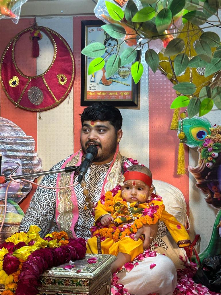 ਕੈਪਸ਼ਨ: ਸ੍ਰੀ ਹਨੁਮਾਨ ਜਯੰਤੀ, ਸ੍ਰੀ ਰਾਮ ਭਗਵਾਨ ਉਤਸਵ ਅਤੇ ਸ੍ਰੀ ਕ੍ਰਿਸ਼ਨ ਜਨਮ ਮਨਾਉਂਦੇ ਹੋਏ ਸ਼ਰਧਾਲੂ, ਕਥਾਵਾਚਕ ਗੋਪਾਲ ਸ਼ਾਸਤਰੀ ਸ਼ਰਧਾਲੂਆਂ ਨੂੰ ਆਪਣੇ ਕਥਾ ਅਤੇ ਭਜਨਾਂ ਰਾਹੀਂ ਨਿਹਾਲ ਕਰਦੇ ਹੋਏ