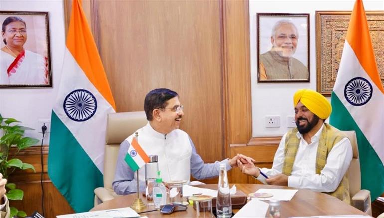 ਨਵੀਂ ਦਿੱਲੀ/ਪੰਜਾਬ : ਪੰਜਾਬ ਦੇ ਮੁੱਖ ਮੰਤਰੀ ਭਗਵੰਤ ਸਿੰਘ ਮਾਨ ਨੇ ਅੱਜ ਨਵੀਂ ਦਿੱਲੀ ਵਿਖੇ ਕੇਂਦਰੀ ਖੁਰਾਕ ਅਤੇ ਜਨਤਕ ਵੰਡ ਮੰਤਰੀ ਪ੍ਰਹਿਲਾਦ ਜੋਸ਼ੀ ਨਾਲ ਮੁਲਾਕਾਤ ਕੀਤੀ। ਮੁਲਾਕਾਤ ਦੌਰਾਨ ਉਨ੍ਹਾਂ ਨੇ ਸੂਬੇ ਦੇ ਕਿਸਾਨਾਂ ਅਤੇ ਮੰਡੀਆਂ ਲਈ ਕਈ ਅਹਿਮ ਰਾਹਤ ਉਪਾਅ ਯਕੀਨੀ ਬਣਾਏ। ਇਸ ਦੌਰਾਨ ਕੇਂਦਰ ਨੇ ਪੰਜਾਬ ਵਿੱਚ ਪਏ 155 ਲੱਖ ਮੀਟ੍ਰਿਕ ਟਨ ਅਨਾਜ ਦੀ ਲਿਫਟਿੰਗ ਲਈ ਵਿਸ਼ੇਸ਼ ਰੇਲ ਗੱਡੀਆਂ ਚਲਾਉਣ ਲਈ ਸਹਿਮਤੀ ਦਿੱਤੀ ਜਿਸ ਨਾਲ ਹਾੜੀ ਮੰਡੀਕਰਨ ਸੀਜ਼ਨ ਤੋਂ ਪਹਿਲਾਂ ਸੂਬੇ ਵਿੱਚ ਅਨਾਜ ਦੇ ਭੰਡਾਰਨ ਸਬੰਧੀ ਗੰਭੀਰ ਸੰਕਟ ਨਾਲ ਨਜਿੱਠਣ ਵਿੱਚ ਮਦਦ ਮਿਲੇਗੀ।