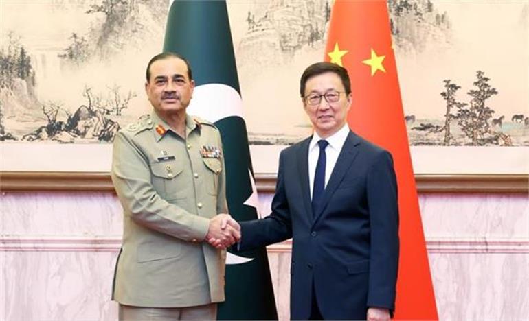 ਬੀਜਿੰਗ : ਚੀਨ ਦੇ ਉਪ ਰਾਸ਼ਟਰਪਤੀ ਹਾਨ ਜ਼ੇਂਗ ਨੇ ਸ਼ੁੱਕਰਵਾਰ ਨੂੰ ਬੀਜਿੰਗ ਵਿੱਚ ਪਾਕਿਸਤਾਨੀ ਫੌਜ ਮੁਖੀ ਫੀਲਡ ਮਾਰਸ਼ਲ ਸਈਦ ਅਸੀਮ ਮੁਨੀਰ ਨਾਲ ਮੁਲਾਕਾਤ ਕੀਤੀ।