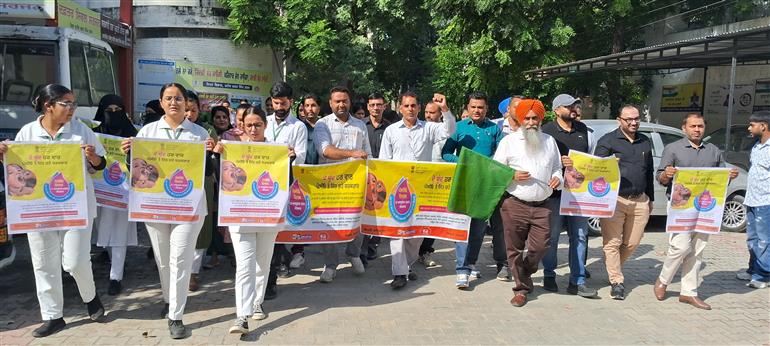 ਨਵਾਂਸ਼ਹਿਰ (ਮਨੋਰੰਜਨ ਕਾਲੀਆ) : ਸਿਵਲ ਸਰਜਨ ਡਾ. ਗੁਰਿੰਦਰਜੀਤ ਸਿੰਘ ਨੇ ਅੱਜ ਸਿਵਲ ਸਰਜਨ ਦਫ਼ਤਰ, ਸ਼ਹੀਦ ਭਗਤ ਸਿੰਘ ਨਗਰ ਵਿਖੇ 12 ਅਕਤੂਬਰ, 2025 ਤੋਂ ਸ਼ੁਰੂ ਹੋ ਰਹੀ ਉਪ ਰਾਸ਼ਟਰੀ ਪਲਸ ਪੋਲੀਓ ਮੁਹਿੰਮ ਸਬੰਧੀ ਨਵਾਂਸ਼ਹਿਰ ਸ਼ਹਿਰੀ ਖੇਤਰ ਵਿੱਚ ਆਮ ਲੋਕਾਂ ਵਿੱਚ ਜਾਗਰੂਕਤਾ ਫੈਲਾਉਣ ਲਈ ਜਾਗਰੂਕਤਾ ਰੈਲੀ ਨੂੰ ਹਰੀ ਝੰਡੀ ਦਿਖਾ ਕੇ ਰਵਾਨਾ ਕੀਤਾ।