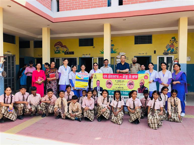 ਇਸੇ ਕੜੀ ਵਿੱਚ ਅੱਜ ਐੱਸ.ਐੱਮ.ਓ. ਡਾ. ਸਤਵਿੰਦਰਪਾਲ ਸਿੰਘ ਨੇ ਮਾਤਾ ਪ੍ਰਕਾਸ਼ ਕੌਰ ਮਿਡਲ ਸਕੂਲ, ਗੜਸ਼ੰਕਰ ਰੋਡ, ਨਵਾਂਸ਼ਹਿਰ ਵਿਖੇ “ਹਰ ਸ਼ੁੱਕਰਵਾਰ–ਡੇਂਗੂ 'ਤੇ ਵਾਰ” ਮੁਹਿੰਮ ਤਹਿਤ ਜਾਗਰੂਕਤਾ ਪ੍ਰੋਗਰਾਮ ਆਯੋਜਿਤ ਕੀਤਾ। ਇਸ ਦੌਰਾਨ ਉਨ੍ਹਾਂ ਨੇ ਸਿਹਤ ਟੀਮ ਸਮੇਤ ਸਕੂਲ ਅਤੇ ਆਲੇ-ਦੁਆਲੇ ਇਲਾਕੇ ਵਿੱਚ ਮੱਛਰਾਂ ਦੀ ਬ੍ਰੀਡਿੰਗ ਨੂੰ ਰੋਕਣ ਲਈ ਲਾਰਵਾ ਚੈੱਕਿੰਗ ਕੀਤੀ ਅਤੇ ਜਰੂਰੀ ਹਦਾਇਤਾਂ ਜਾਰੀ ਕੀਤੀਆਂ।