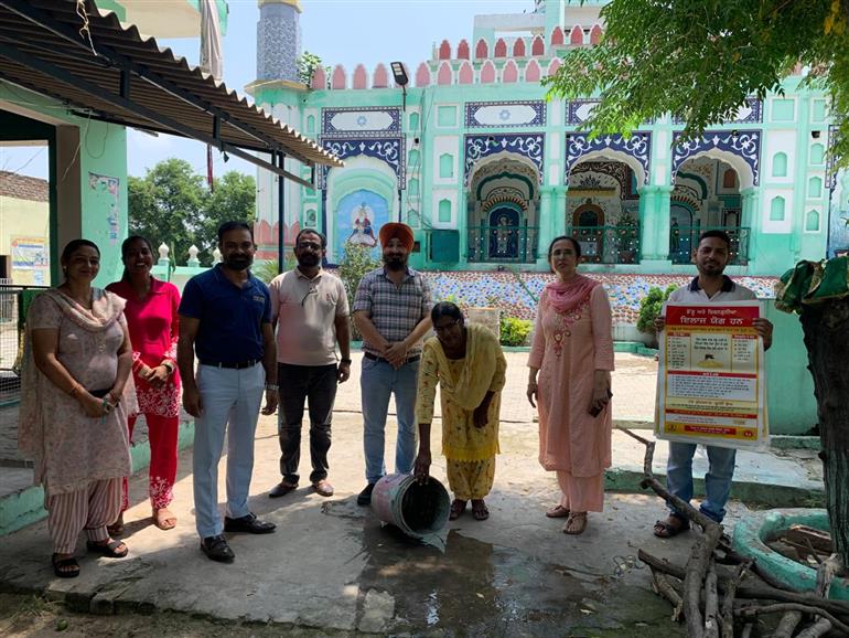 ਨਵਾਂਸ਼ਹਿਰ   ( ਮਨੋਰੰਜਨ ਕਾਲੀਆ)  ਸਿਵਲ ਸਰਜਨ ਡਾ. ਗੁਰਿੰਦਰਜੀਤ ਸਿੰਘ ਦੇ ਦਿਸ਼ਾ-ਨਿਰਦੇਸ਼ਾਂ ਅਨੁਸਾਰ ਮੁੱਢਲਾ ਸਿਹਤ ਕੇਂਦਰ, ਮੁਜ਼ੱਫਰਪੁਰ ਦੇ ਸੀਨੀਅਰ ਮੈਡੀਕਲ ਅਫਸਰ ਡਾ. ਗੀਤਾਂਜਲੀ ਸਿੰਘ ਦੀ ਯੋਗ ਰਹਿਨੁਮਾਈ ਹੇਠ ਸਿਹਤ ਬਲਾਕ ਮੁਜ਼ੱਫਰਪੁਰ ਦੀ ਡੇਂਗੂ ਵਿਰੋਧੀ ਟੀਮ ਨੇ "ਹਰ ਸ਼ੁੱਕਰਵਾਰ-ਡੇੰਗੂ ਤੇ ਵਾਰ" ਮੈਗਾ ਮੁਹਿੰਮ ਤਹਿਤ ਪਿੰਡ ਮੁਜ਼ੱਫਰਪੁਰ ਵਿਖੇ ਅੱਜ ਡੇਂਗੂ ਤੋਂ ਬਚਾਅ ਲਈ ਧਾਰਮਿਕ ਸਥਾਨਾਂ 'ਤੇ ਲਾਰਵੇ ਦੀ ਜਾਂਚ ਕੀਤੀ।