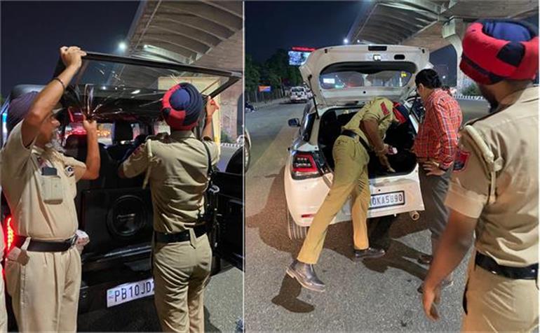 ਲੁਧਿਆਣਾ : ਕਮਿਸ਼ਨਰੇਟ ਪੁਲਸ ਲੁਧਿਆਣਾ ਵੱਲੋਂ ਤਿਉਹਾਰਾਂ ਦੇ ਮੌਕੇ ‘ਤੇ ਲੋਕਾਂ ਦੀ ਸੁਰੱਖਿਆ ਅਤੇ ਸ਼ਾਂਤੀ ਬਣਾਈ ਰੱਖਣ ਲਈ ਵਿਸ਼ੇਸ਼ ਸੁਰੱਖਿਆ ਮੁਹਿੰਮ ਚਲਾਈ ਗਈ ਹੈ। ਇਸ ਮੁਹਿੰਮ ਦੇ ਤਹਿਤ ਏ.ਡੀ.ਸੀ.ਪੀ. ਜ਼ੋਨ-3 ਦੇ ਅਧੀਨ ਆਉਂਦੇ ਥਾਣਿਆਂ ਵੱਲੋਂ ਆਪਣੇ-ਆਪਣੇ ਇਲਾਕਿਆਂ ਵਿਚ ਸਪੈਸ਼ਲ ਨਾਕਾਬੰਦੀ ਕੀਤੀ ਗਈ। ਨਾਕਾਬੰਦੀ ਦੌਰਾਨ ਪੁਲਸ ਪਾਰਟੀਆਂ ਵੱਲੋਂ ਸ਼ਹਿਰ ਦੇ ਮੁੱਖ ਰਸਤੇ ਅਤੇ ਸੰਵੇਦਨਸ਼ੀਲ ਇਲਾਕਿਆਂ ਵਿਚ ਗੱਡੀਆਂ ਦੀ ਬਾਰੀਕੀ ਨਾਲ ਚੈਕਿੰਗ ਕੀਤੀ ਗਈ। ਖਾਸ ਤੌਰ ‘ਤੇ ਬਲੈਕ ਫਿਲਮਾਂ ਲਗਾਈਆਂ ਗੱਡੀਆਂ, ਹੂਟਰਾਂ ਅਤੇ ਅਣ-ਅਧਿਕਾਰਤ ਲਾਈਟਾਂ ਵਾਲੇ ਵਾਹਨਾਂ ਦੀ ਜਾਂਚ ਕਰਕੇ ਚਲਾਣ ਕੀਤੇ ਗਏ।