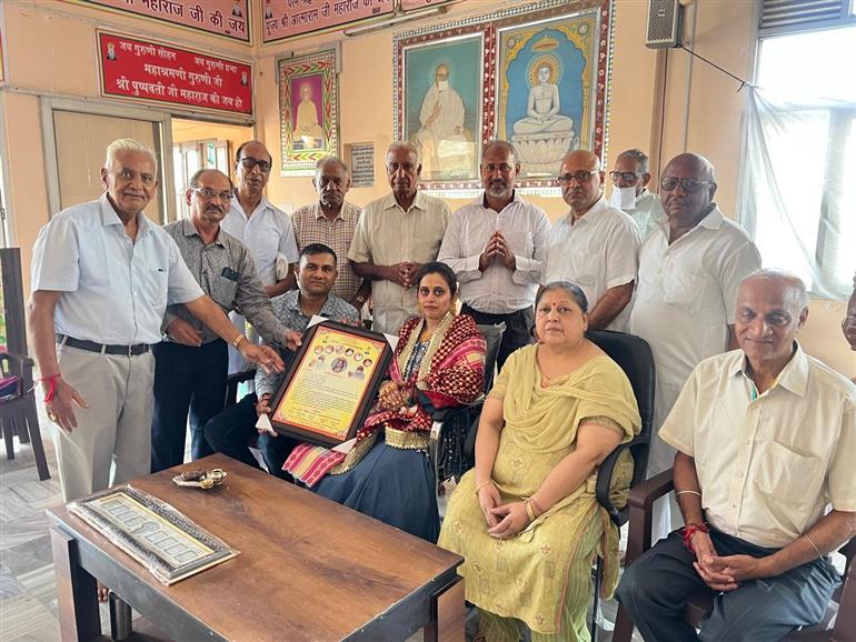 ਨਵਾਂਸ਼ਹਿਰ (ਮਨੋਰੰਜਨ ਕਾਲੀਆ) : ਮਹਾਸਾਧਵੀ ਸ਼੍ਰੀ ਪ੍ਰਿਯਦਰਸ਼ਨ ਜੀ ਮਹਾਰਾਜ, ਸ਼੍ਰੀ ਕਿਰਨ ਪ੍ਰਭਾ ਜੀ, ਸ਼੍ਰੀ ਰਤਨ ਜੋਤੀ ਜੀ, ਸ਼੍ਰੀ ਵਿਚਕਸ਼ਨ ਸ਼੍ਰੀ ਜੀ, ਸ਼੍ਰੀ ਅਰਪਿਤਾ ਜੀ, ਸ਼੍ਰੀ ਵੰਦਿਤਾ ਜੀ ਅਤੇ ਸ਼੍ਰੀ ਮੋਕਸ਼ਦਾ ਜੀ ਮਹਾਰਾਜ ਦੀ ਮੌਜੂਦਗੀ ਵਿੱਚ ਅਤੇ ਪ੍ਰਧਾਨ ਸੁਰੇਂਦਰ ਜੈਨ ਦੀ ਅਗਵਾਈ ਵਿੱਚ ਜੈਨ ਸਥਾਨਕ ਨਵਾਂਸ਼ਹਿਰ ਵਿਖੇ ਇੱਕ ਸਨਮਾਨ ਸਮਾਰੋਹ ਦਾ ਆਯੋਜਨ ਕੀਤਾ ਗਿਆ! ਨਵਾਂਸ਼ਹਿਰ ਦੇ ਇਸ ਚਾਤੁਰਮਾਸ ਨੂੰ ਇਤਿਹਾਸਕ ਬਣਾਉਂਦੇ ਹੋਏ ਸ਼੍ਰੀ ਪੰਕਜ ਜੈਨ ਦੀ ਪਤਨੀ ਤਪਸਵੀ ਰਤਨ ਸ਼੍ਰੀਮਤੀ ਦੀਕਸ਼ਾ ਜੈਨ ਨੇ 1 ਮਹੀਨਾ ਬਿਨਾਂ ਕੁਝ ਖਾਧੇ ਅਤੇ ਸਿਰਫ਼ ਗਰਮ ਪਾਣੀ ਦੇ ਆਧਾਰ 'ਤੇ ਇਹ ਤਪੱਸਿਆ ਕੀਤੀ! ਇਸ ਮੌਕੇ 'ਤੇ ਅੱਜ ਜੈਨ ਸਥਾਨਕ ਵਿੱਚ ਉਨ੍ਹਾਂ ਦਾ ਸਨਮਾਨ ਸਮਾਰੋਹ ਆਯੋਜਿਤ ਕੀਤਾ ਗਿਆ! ਜਿਸ ਵਿਚ ਸਭ ਤੋਂ ਪਹਿਲਾਂ ਐਸ.ਐਸ ਜੈਨ ਸਭਾ ਦੇ ਪ੍ਰਧਾਨ ਸੁਰਿੰਦਰ ਜੈਨ, ਸਰਪ੍ਰਸਤ ਸ੍ਰੀ ਸ਼ੀਤਲ ਜੈਨ, ਮੀਤ ਪ੍ਰਧਾਨ ਰਜਨੀਸ਼ ਜੈਨ ਗੁੱਗੂ, ਜਨਰਲ ਸਕੱਤਰ ਰਤਨ ਕੁਮਾਰ ਜੈਨ, ਖਜ਼ਾਨਚੀ ਰਾਕੇਸ਼ ਜੈਨ ਬੱਬੀ, ਸਲਾਹਕਾਰ ਅਚਲ ਜੈਨ, ਘਨਸ਼ਿਆਮ ਜੈਨ, ਚੰਦਰ ਮੋਹਨ ਜੈਨ, ਮਨੋਜ ਜੈਨ, ਪਦਮ ਜੈਨ, ਦਰਸ਼ਨ ਜੈਨ ਅਤੇ ਹੋਰ ਮੈਂਬਰਾਂ ਦਾ ਸਨਮਾਨ ਕੀਤਾ। ਜੈਨ ਨੇ ਉਸ ਨੂੰ ਹਾਰ ਪਹਿਨਾ ਕੇ, ਉਸ 'ਤੇ ਸੀਸ਼ ਪਾ ਕੇ ਅਤੇ ਉਸ ਨੂੰ ਯਾਦਗਾਰੀ ਚਿੰਨ੍ਹ ਦੇ ਕੇ! ਉਪਰੰਤ ਸ਼੍ਰੀ ਮਹਾਵੀਰ ਜੈਨ ਯੁਵਕ ਮੰਡਲ ਦੇ ਪ੍ਰਧਾਨ ਪੰਕਜ ਜੈਨ, ਮੰਤਰੀ ਦੀਪਕ ਜੈਨ, ਚੰਦਨ ਜੈਨ, ਸ਼੍ਰੀ ਵਰਧਮਾਨ ਜੈਨ ਸੇਵਾ ਸੰਘ ਦੇ ਪ੍ਰਧਾਨ ਮਨੀਸ਼ ਜੈਨ, ਮੀਤ ਪ੍ਰਧਾਨ ਰਾਜੇਸ਼ ਜੈਨ, ਪ੍ਰਯਾਸ ਸੰਮਤੀ ਦੇ ਦਿਨੇਸ਼ ਜੈਨ, ਮੋਹਿਤ ਜੈਨ, ਜੈਨ ਮਹਿਲਾ ਸੰਘ ਦੀ ਪ੍ਰਧਾਨ ਕੰਚਨ ਜੈਨ, ਮੰਤਰੀ ਸ਼੍ਰੀ ਤ੍ਰਿਪਤਾ ਜੈਨ, ਸ਼੍ਰੀ ਚੰਦਨਬਾਲਾ ਜੈਨ ਯੁਵਤੀ ਮੰਡਲ ਦੀ ਪ੍ਰਧਾਨ ਰੀਤੂ ਜੈਨ, ਮੰਤਰੀ ਰੂਬੀ ਜੈਨ, ਨੀਤਿਕਾ ਜੈਨ, ਅਲਕਾ ਜੈਨ ਅਤੇ ਹੋਰ ਮੈਂਬਰਾਂ ਨੇ ਦੀਕਸ਼ਾ ਜੈਨ ਨੂੰ ਹਾਰ ਪਾ ਕੇ ਅਤੇ ਯਾਦਗਾਰੀ ਚਿੰਨ੍ਹ ਦੇ ਕੇ ਸਨਮਾਨਿਤ ਕੀਤਾ! ਇਸ ਮੌਕੇ ਜੈਨ ਮਹਿਲਾ ਸੰਘ ਅਤੇ ਚੰਦਨਬਾਲਾ ਜੈਨ ਯੁਵਤੀ ਮੰਡਲ ਵੱਲੋਂ ਮਹਿੰਦੀ ਦੀ ਰਸਮ ਵੀ ਕੀਤੀ ਗਈ! ਸਾਰਿਆਂ ਨੇ ਦੀਕਸ਼ਾ ਜੈਨ 'ਤੇ ਮਹਿੰਦੀ ਲਗਾ ਕੇ ਉਨ੍ਹਾਂ ਦੀ ਮਾਸਖਮਨ ਤਪੱਸਿਆ ਦੀ ਕਾਮਨਾ ਕੀਤੀ! ਇਸ ਮੌਕੇ ਤਪਸਵੀ ਰਤਨ ਦੀਕਸ਼ਾ ਜੈਨ ਦੇ ਪਤੀ ਪੰਕਜ ਜੈਨ, ਸਹੁਰਾ ਅਨਿਲ ਜੈਨ, ਸੱਸ ਆਦਰਸ਼ ਜੈਨ, ਪਿਤਾ ਸਤੀਸ਼ ਜੈਨ, ਮਾਂ ਮੀਨਾਕਸ਼ੀ ਜੈਨ ਅਤੇ ਹੋਰ ਪਰਿਵਾਰਕ ਮੈਂਬਰਾਂ ਨੂੰ ਵੀ ਸਨਮਾਨਿਤ ਕੀਤਾ ਗਿਆ! ਇਸ ਮੌਕੇ 'ਤੇ ਮਹਾਸਾਧਵੀ ਸ਼੍ਰੀ ਪ੍ਰਿਯਦਰਸ਼ਨ ਜੀ ਮਹਾਰਾਜ ਨੇ ਮੰਗਲ ਪਾਠ ਦਾ ਪਾਠ ਕਰਕੇ ਸਾਰਿਆਂ ਨੂੰ ਅਸ਼ੀਰਵਾਦ ਦਿੱਤਾ! ਇਸ ਮੌਕੇ 'ਤੇ ਮਹਾਸਾਧਵੀ ਸ਼੍ਰੀ ਰਤਨ ਜੋਤੀ ਜੀ ਮਹਾਰਾਜ ਅਤੇ ਮਹਾਸਾਧਵੀ ਸ਼੍ਰੀ ਵਿਚਕਸ਼ਨ ਸ਼੍ਰੀ ਮਹਾਰਾਜ ਨੇ ਕਿਹਾ ਕਿ ਦੀਕਸ਼ਾ ਜੈਨ ਨੇ ਪੂਰੇ 31 ਦਿਨ ਬਿਨਾਂ ਕੁਝ ਖਾਧੇ ਅਤੇ ਸਿਰਫ਼ ਗਰਮ ਪਾਣੀ ਦੇ ਆਧਾਰ 'ਤੇ ਤਪੱਸਿਆ ਕਰਕੇ ਪੂਰੇ ਜੈਨ ਸਮਾਜ ਦੇ ਨਾਲ-ਨਾਲ ਆਪਣੇ ਪਰਿਵਾਰ ਦਾ ਸਨਮਾਨ ਵਧਾਇਆ ਹੈ! ਉਨ੍ਹਾਂ ਦੱਸਿਆ ਕਿ ਤਪੱਸਿਆ ਕਰਨ ਨਾਲ ਕਰਮ ਸ਼ੁੱਧ ਹੁੰਦੇ ਹਨ ਅਤੇ ਆਤਮਾ ਨੂੰ ਸ਼ਕਤੀ ਮਿਲਦੀ ਹੈ! ਮਹਾਸਾਧਵੀ ਸ਼੍ਰੀ ਮੋਕਸ਼ਦਾ ਜੀ ਨੇ ਭਜਨ ਰਾਹੀਂ ਉਨ੍ਹਾਂ ਨੂੰ ਸ਼ੁਭਕਾਮਨਾਵਾਂ ਦਿੱਤੀਆਂ! ਦੀਕਸ਼ਾ ਜੈਨ ਦੇ ਸਥਾਨਕ ਪਹੁੰਚਣ 'ਤੇ ਜੈਨ ਯੁਵਤੀ ਮੰਡਲ ਦੇ ਮੈਂਬਰਾਂ ਨੇ ਇੱਕ ਬਹੁਤ ਹੀ ਸੁੰਦਰ ਪ੍ਰੋਗਰਾਮ ਪੇਸ਼ ਕੀਤਾ! ਜੈਨ ਸਭਾ ਦੇ ਜਨਰਲ ਸਕੱਤਰ ਰਤਨ ਕੁਮਾਰ ਜੈਨ ਨੇ ਵਧਾਈ ਪੱਤਰ ਪੜ੍ਹਿਆ! ਸਮੁੱਚੇ ਸਮਾਜ ਵੱਲੋਂ ਤਪੱਸਵੀ ਰਤਨ ਦੀਕਸ਼ਾ ਜੈਨ ਦਾ ਹਾਲ-ਚਾਲ ਪੁੱਛਿਆ ਅਤੇ ਉਨ