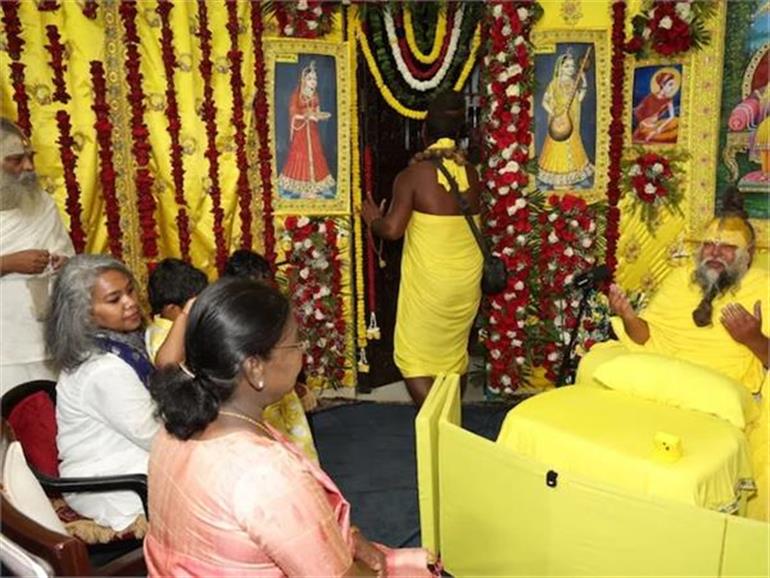 ਸ਼ੁੱਕਰਵਾਰ ਸਵੇਰੇ ਉਨ੍ਹਾਂ ਨੇ ਅਧਿਆਤਮਿਕ ਪ੍ਰੋਗਰਾਮਾਂ ਨਾਲ ਦਿਨ ਦੀ ਸ਼ੁਰੂਆਤ ਕੀਤੀ। ਰਾਸ਼ਟਰਪਤੀ ਰਾਧਾ ਕੇਲੀ ਕੁੰਜ ਸਥਿਤ ਸੰਤ ਪ੍ਰੇਮਾਨੰਦ ਮਹਾਰਾਜ ਦੇ ਆਸ਼ਰਮ ਪਹੁੰਚੀ, ਜਿੱਥੇ ਉਨ੍ਹਾਂ ਨੇ ਸੰਤ ਦੇ ਪ੍ਰਵਚਨ ਸੁਣੇ। ਇਹ ਹਫ਼ਤਾ ਇਸ ਵੀ ਵਿਸ਼ੇਸ਼ ਹੈ, ਕਿਉਂਕਿ ਵੀਰਵਾਰ ਨੂੰ ਸੰਤ ਪ੍ਰੇਮ ਮਹਾਰਾਜ ਜੀ ਦਾ ਜਨਮਦਿਨ ਸੀ। ਆਸ਼ਰਮ 'ਚ ਰਾਸ਼ਟਰਪਤੀ ਨੇ ਸੰਤ ਨਾਲ ਅਧਿਆਤਮਿਕ ਚਰਚਾ ਕੀਤੀ ਅਤੇ ਉਨ੍ਹਾਂ ਨੂੰ ਹੱਥ ਜੋੜ ਕੇ ਪ੍ਰਣਾਮ ਕੀਤਾ ਹੈ। ਸੰਤ ਪ੍ਰੇਮਾਨੰਦ ਨੇ ਪ੍ਰਸੰਨ ਮੁਦਰਾ 'ਚ 'ਰਾਧੇ-ਰਾਧੇ' ਕਹਿ ਕੇ ਉਨ੍ਹਾਂ ਦਾ ਪ੍ਰਣਾਮ ਸਵੀਕਾਰ ਕੀਤਾ। ਮੁਰਮੂ ਨੇ ਸੰਤ ਪ੍ਰੇਮਾਨੰਦ ਮਹਾਰਾਜ ਨੂੰ ਜਨਮ ਦਿਨ ਦੀ ਵਧਾਈ ਵੀ ਦਿੱਤੀ।