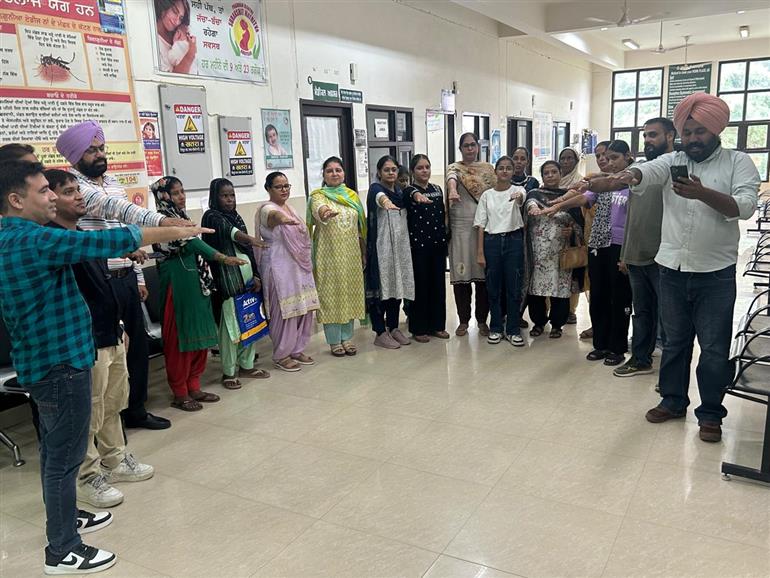 ਨਵਾਂਸ਼ਹਿਰ (ਮਨੋਰੰਜਨ ਕਾਲੀਆ) : ਮਾਣਯੋਗ ਸਿਵਲ ਸਰਜਨ ਡਾ. ਗੁਰਿੰਦਰਜੀਤ ਸਿੰਘ ਜੀ ਦੇ ਦਿਸ਼ਾ-ਨਿਰਦੇਸ਼ਾਂ ਅਨੁਸਾਰ ਸਮੁਦਾਇਕ ਸਿਹਤ ਕੇਂਦਰ, ਰਾਹੋਂ ਦੇ ਸੀਨੀਅਰ ਮੈਡੀਕਲ ਅਫਸਰ ਡਾ. ਸੋਨੀਆ ਦੀ ਯੋਗ ਰਹਿਨੁਮਾਈ ਹੇਠ ਸਮੁਦਾਇਕ ਸਿਹਤ ਕੇਂਦਰ, ਰਾਹੋਂ ਵਿਖੇ ਵੀਰਵਾਰ ਨੂੰ ਨਸ਼ਾ ਮੁਕਤ ਭਾਰਤ ਅਭਿਆਨ ਤਹਿਤ ਆਮ ਲੋਕਾਂ ਵਿੱਚ ਨਸ਼ਿਆਂ ਵਿਰੁੱਧ ਵਿਆਪਕ ਪੱਧਰ 'ਤੇ ਜਾਗਰੂਕਤਾ ਫੈਲਾਉਣ ਲਈ ਸਹੁੰ ਚੁੱਕੀ ਗਈ।