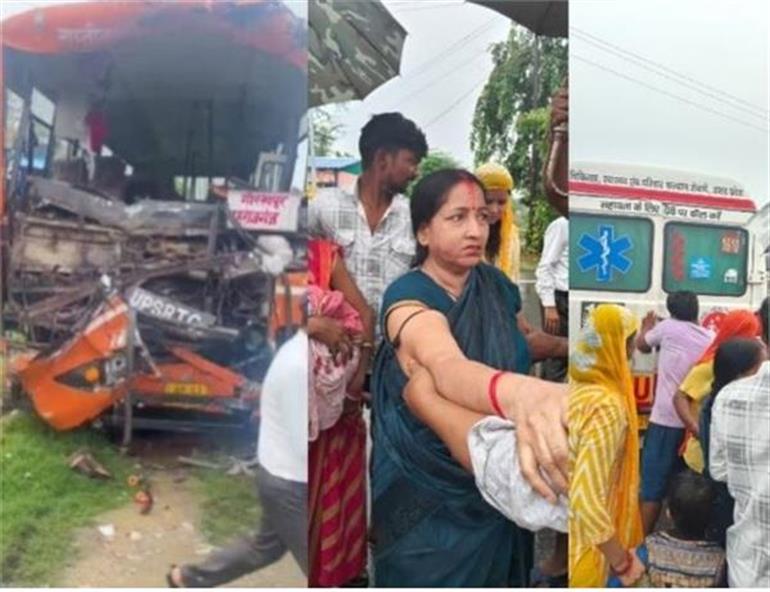 ਉੱਤਰ ਪ੍ਰਦੇਸ਼ ਦੇ ਮਹਾਰਾਜਗੰਜ ਜ਼ਿਲ੍ਹੇ ਦੇ ਭਿਤੌਲੀ ਥਾਣਾ ਖੇਤਰ ਅਧੀਨ ਗੋਰਖਪੁਰ-ਮਹਾਰਾਜਗੰਜ ਰਾਸ਼ਟਰੀ ਹਾਈਵੇਅ ਨੰਬਰ 730 'ਤੇ ਸ਼ੁੱਕਰਵਾਰ ਨੂੰ ਤਿੰਨ ਸਰਕਾਰੀ ਰੋਡਵੇਜ਼ ਬੱਸਾਂ ਟਕਰਾ ਗਈਆਂ। ਅਗਾਇਆ ਪੁਲ ਨੇੜੇ ਹੋਏ ਭਿਆਨਕ ਸੜਕ ਹਾਦਸੇ 'ਚ 40 ਤੋਂ ਵੱਧ ਯਾਤਰੀ ਜ਼ਖਮੀ ਹੋ ਗਏ, ਜਿਨ੍ਹਾਂ ਵਿੱਚੋਂ ਲਗਭਗ 15 ਦੀ ਹਾਲਤ ਗੰਭੀਰ ਹੈ। ਚਸ਼ਮਦੀਦਾਂ ਦੇ ਅਨੁਸਾਰ ਇਹ ਹਾਦਸਾ ਓਵਰਟੇਕ ਕਰਨ ਦੀ ਕੋਸ਼ਿਸ਼ ਦੌਰਾਨ ਵਾਪਰਿਆ। ਜਿਵੇਂ ਹੀ ਇੱਕ ਬੱਸ ਡਰਾਈਵਰ ਨੇ ਦੂਜੇ ਵਾਹਨ ਨੂੰ ਤੇਜ਼ੀ ਨਾਲ ਲੰਘਣ ਦੀ ਕੋਸ਼ਿਸ਼ ਕੀਤੀ, ਪਿੱਛੇ ਤੋਂ ਆ ਰਹੀ ਤੀਜੀ ਬੱਸ ਸਾਹਮਣੇ ਵਾਲੀ ਬੱਸ ਨਾਲ ਟਕਰਾ ਗਈ।