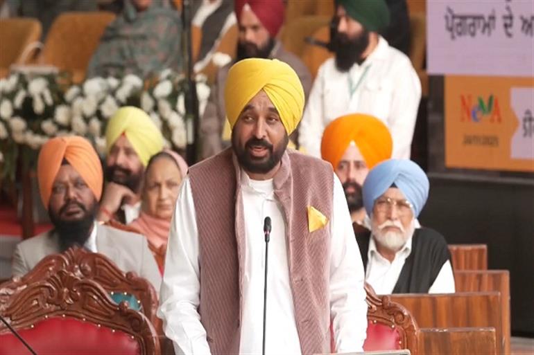 ਸ੍ਰੀ ਅਨੰਦਪੁਰ ਸਾਹਿਬ : ਨੌਵੇਂ ਗੁਰੂ ਸ੍ਰੀ ਗੁਰੂ ਤੇਗ ਬਹਾਦਰ ਜੀ ਦੇ 350 ਸਾਲਾ ਸ਼ਤਾਬਦੀ ਸਮਾਰੋਹ ਨੂੰ ਸਮਰਪਿਤ ਪੰਜਾਬ ਵਿਧਾਨ ਸਭਾ ਦੇ ਵਿਸ਼ੇਸ਼ ਇਜਲਾਸ ਦੀ ਕਾਰਵਾਈ ਦੌਰਾਨ ਸੰਬੋਧਨ ਕਰਦਿਆਂ ਮੁੱਖ ਮੰਤਰੀ ਮਾਨ ਨੇ ਕਿਹਾ ਕਿ ਅੱਜ ਦਾ ਦਿਨ ਬੇਹੱਦ ਸੁਭਾਗਾ ਹੈ। ਉਨ੍ਹਾਂ ਨੇ ਵਿਰੋਧੀ ਧਿਰ ਵਲੋਂ ਹੰਗਾਮਾ ਕਰਨ ਨੂੰ ਗਲਤ ਆਖ਼ਦਿਆਂ ਕਿਹਾ ਕਿ ਅੱਜ ਰੌਲਾ ਪਾਉਣ ਵਾਲਾ ਜਾਂ ਸ਼ੋਰ ਮਚਾਉਣ ਵਾਲਾ ਦਿਨ ਨਹੀਂ, ਇਹ ਸਜਦਾ ਕਰਨ ਵਾਲਾ ਦਿਨ ਹੈ ਅਤੇ ਪਰਮਾਤਮਾ ਇਨ੍ਹਾਂ ਨੂੰ ਸਮੱਤ ਬਖ਼ਸ਼ੇ। ਮੁੱਖ ਮੰਤਰੀ ਨੇ ਕਿਹਾ ਕਿ ਇਸ ਵਿਸ਼ੇਸ਼ ਇਜਲਾਸ ਨੂੰ ਦੇਖਣ ਲਈ ਧਾਰਮਿਕ ਅਤੇ ਸਮਾਜਿਕ ਸ਼ਖ਼ਸੀਅਤਾਂ ਆਈਆਂ ਹੋਈਆਂ ਹਨ।