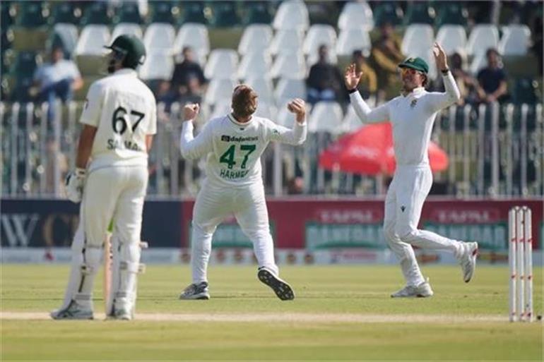 ਰਾਵਲਪਿੰਡੀ– ਆਫ ਸਪਿੰਨਰ ਸਾਈਮਨ ਹਾਰਮਰ ਦੀਆਂ 6 ਵਿਕਟਾਂ ਦੀ ਬਦੌਲਤ ਦੱਖਣੀ ਅਫਰੀਕਾ ਨੇ ਦੂਜੇ ਤੇ ਆਖਰੀ ਕ੍ਰਿਕਟ ਟੈਸਟ ਦੇ ਚੌਥੇ ਹੀ ਦਿਨ ਵੀਰਵਾਰ ਨੂੰ ਇੱਥੇ ਪਾਕਿਸਤਾਨ ਨੂੰ 8 ਵਿਕਟਾਂ ਨਾਲ ਹਰਾ ਕੇ ਲੜੀ 1-1 ਨਾਲ ਬਰਾਬਰ ਕਰ ਦਿੱਤੀ। ਪਾਕਿਸਤਾਨ ਨੇ ਲਾਹੌਰ ਵਿਚ ਪਹਿਲਾ ਟੈਸਟ ਮੈਚ 4 ਦਿਨਾਂ ਦੇ ਅੰਦਰ 93 ਦੌੜਾਂ ਨਾਲ ਜਿੱਤਿਆ ਸੀ ਜਦਕਿ ਰਾਵਲਪਿੰਡੀ ਵਿਚ ਹਾਰਮਰ ਨੇ 50 ਦੌੜਾਂ ’ਤੇ 6 ਵਿਕਟਾਂ ਲੈ ਕੇ ਪਾਕਿਸਤਾਨ ਨੂੰ ਦੂਜੀ ਪਾਰੀ 'ਚ 138 ਦੌੜਾਂ ’ਤੇ ਸਮੇਟ ਕੇ ਦੱਖਣੀ ਅਫਰੀਕਾ ਦੀ ਜਿੱਤ ਦੀ ਨੀਂਹ ਰੱਖੀ।ਦੱਖਣੀ ਅਫਰੀਕਾ ਨੂੰ 68 ਦੌੜਾਂ ਦਾ ਟੀਚਾ ਮਿਲਿਆ ਤੇ ਵਿਸ਼ਵ ਟੈਸਟ ਚੈਂਪੀਅਨ ਟੀਮ ਨੇ 12.3 ਓਵਰਾਂ ਵਿਚ 2 ਵਿਕਟਾਂ ’ਤੇ 73 ਦੌੜਾਂ ਬਣਾ ਕੇ ਜਿੱਤ ਦਰਜ ਕੀਤੀ।ਹਾਰਮਰ ਤੇ ਸੱਟ ਕਾਰਨ ਪਹਿਲੇ ਟੈਸਟ ਵਿਚੋਂ ਬਾਹਰ ਰਹੇ ਖੱਬੇ ਹੱਥ ਦੇ ਸਪਿੰਨਰ ਕੇਸ਼ਵ ਮਹਾਰਾਜ ਨੇ ਮੈਚ ਵਿਚ ਮਿਲ ਕੇ 17 ਵਿਕਟਾਂ ਲੈ ਕੇ ਦੱਖਣੀ ਅਫਰੀਕਾ ਦੀ ਜਿੱਤ ਦੀ ਰਾਹ ਬਣਾਈ।