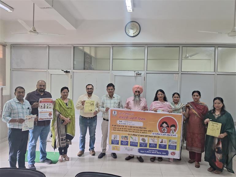 ਨਵਾਂਸ਼ਹਿਰ (ਮਨੋਰੰਜਨ ਕਾਲੀਆ) : ਸਿਵਲ ਸਰਜਨ ਡਾ. ਗੁਰਿੰਦਰਜੀਤ ਸਿੰਘ ਦੀ ਯੋਗ ਅਗਵਾਈ ਹੇਠ ਜ਼ਿਲ੍ਹਾ ਸਿਹਤ ਵਿਭਾਗ, ਸ਼ਹੀਦ ਭਗਤ ਸਿੰਘ ਨਗਰ ਵੱਲੋਂ 7 ਅਗਸਤ, 2025 ਤੋੰ ਮਨਾਏ ਜਾ ਰਹੇ ਪੇਟ ਦੇ ਕੀੜਿਆਂ ਤੋਂ ਰਾਸ਼ਟਰੀ ਮੁਕਤੀ ਦਿਵਸ ਦੇ ਮੱਦੇਨਜ਼ਰ ਆਮ ਲੋਕਾਂ ਵਿੱਚ ਜਾਗਰੂਕਤਾ ਫੈਲਾਉਣ ਲਈ ਸਿਵਲ ਸਰਜਨ ਦਫਤਰ, ਸ਼ਹੀਦ ਭਗਤ ਸਿੰਘ ਨਗਰ ਵਿਖੇ ਬੁੱਧਵਾਰ ਨੂੰ ਇਕ ਜਾਗਰੂਕਤਾ ਪੋਸਟਰ ਰਿਲੀਜ਼ ਕੀਤਾ ਗਿਆ।