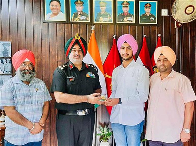 ਗੁਰਦਾਸਪੁਰ 27 ਜੂਨ 2025 - ਫੌਜ ਵਿਚ ਅਫਸਰ ਬਣਨ ਵਾਲੇ ਨੌਜਵਾਨਾਂ ਲਈ ਰੋਲ ਮਾਡਲ ਬਣੇ ਅਰਮਾਨਪ੍ਰੀਤ ਸਿੰਘ ਨੇ ਐਨ.ਡੀ.ਏ. ਦੀ ਪ੍ਰੀਖਿਆ ਸਾਲ-2024 ਵਿਚ ਦੇਸ਼ ਭਰ ਵਿਚੋਂ ਪਹਿਲਾ ਸਥਾਨ ਪ੍ਰਾਪਤ ਕਰਕੇ ਆਪਣੀ ਕਾਬਲੀਅਤ ਦੇ ਝੰਡੇ ਗੱਡੇ ਹਨ । ਅਰਮਾਨਪ੍ਰੀਤ ਵੱਲੋਂ ਆਪਣੀ ਟ੍ਰੇਨਿੰਗ ਦੀ ਛੁੱਟੀ ਦੌਰਾਨ ਤਿੱਬੜੀ ਕੈਂਟ ਪਹੁੰਚ ਕੇ ਆਪਣੇ ਸੀਨੀਅਰ ਸ਼ਹੀਦ ਲੈਫਟੀਨੈਂਟ ਨਵਦੀਪ ਸਿੰਘ ਅਸ਼ੋਕ ਚੱਕਰ ਨੂੰ ਪਹਿਲਾਂ ਸਲੂਟ ਕਰਦਿਆਂ ਫੁੱਲ ਭੇਂਟ ਕੀਤੇ ਅਤੇ ਫਿਰ ਸਟੇਸ਼ਨ ਕਮਾਂਡਰ ਤਿੱਬੜੀ ਕੈਂਟ ਬ੍ਰਿਗੇਡੀਅਰ ਵਿਕਰਮਜੀਤ ਸਿੰਘ ਕੋਛੜ ਜੀ ਤੋਂ ਅਸ਼ੀਰਵਾਦ ਲਿਆ। ਬ੍ਰਿਗੇਡੀਅਰ ਵਿਕਰਮਜੀਤ ਸਿੰਘ ਕੋਛੜ ਨੇ ਅਰਮਾਨਪ੍ਰੀਤ ਸਿੰਘ ਨੂੰ ਅਸ਼ੀਰਵਾਦ ਦਿੰਦਿਆਂ ਕਿਹਾ ਕਿ ਭਾਰਤੀ ਫੌਜ ਦੁਨੀਆਂ ਦੀ ਸ਼ਕਤੀਸਾਲੀ ਫੌਜ ਹੈ। ਇਸ ਵਿਚ ਭਰਤੀ ਹੋ ਕੇ ਦੇਸ਼ ਦੀ ਸੇਵਾ ਕਰਨਾ ਬਹੁਤ ਵੱਡੀ ਮਾਣ ਵਾਲੀ ਗੱਲ ਹੈ, ਭਾਰਤੀ ਫੌਜ ਨੂੰ ਅਰਮਾਨਪ੍ਰੀਤ ਸਿੰਘ ਵਰਗੇ ਹੋਣਹਾਰ ਬਹਾਦਰ ਅਫਸਰਾਂ ਦੀ ਬਹੁਤ ਵੱਡੀ ਲੋੜ ਹੈ ।