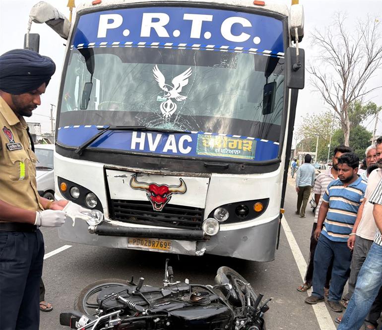ਭਵਾਨੀਗੜ੍ਹ : ਇੱਥੇ ਬਠਿੰਡਾ-ਚੰਡੀਗੜ੍ਹ ਨੈਸ਼ਨਲ ਹਾਈਵੇ ‘ਤੇ ਪਿੰਡ ਰੌਸ਼ਨਵਾਲਾ ਨੇੜੇ ਅੱਜ ਸਵੇਰੇ ਇਕ ਦਰਦਨਾਕ ਸੜਕ ਹਾਦਸਾ ਵਾਪਰ ਗਿਆ ਜਿਸ ਵਿਚ ਇਕ ਮੋਟਰਸਾਈਕਲ ਸਵਾਰ ਦੀ ਮੌਤ ਹੋ ਗਈ। ਮਿਲੀ ਜਾਣਕਾਰੀ ਅਨੁਸਾਰ ਮ੍ਰਿਤਕ ਵਿਅਕਤੀ ਅਣਅਧਿਕਾਰਤ ਕੱਟ ਨੂੰ ਪਾਰ ਕਰ ਰਿਹਾ ਸੀ ਕਿ ਇਸ ਦੌਰਾਨ ਤੇਜ਼ ਰਫ਼ਤਾਰ ਪੀ.ਆਰ.ਟੀ.ਸੀ ਦੀ ਬੱਸ ਨੇ ਉਸ ਨੂੰ ਜ਼ੋਰਦਾਰ ਟੱਕਰ ਮਾਰ ਦਿੱਤੀ। ਟੱਕਰ ਇੰਨੀ ਭਿਆਨਕ ਸੀ ਕਿ ਮੋਟਰਸਾਈਕਲ ਸਵਾਰ ਨੇ ਘਟਨਾ ਸਥਾਨ ‘ਤੇ ਹੀ ਦਮ ਤੋੜ ਦਿੱਤਾ। ਹਾਦਸੇ ਵਾਲੀ ਥਾਂ 'ਤੇ ਮੌਜੂਦ ਸੜਕ ਸੁਰੱਖਿਆ ਫੋਰਸ (ਐੱਸਐੱਸਐੱਫ) ਦੇ ਏ.ਐੱਸ.ਆਈ. ਹਰਬੰਸ ਸਿੰਘ ਨੇ ਦੱਸਿਆ ਕਿ ਘਟਨਾ ਸਬੰਧੀ ਪਤਾ ਲੱਗਦੇ ਹੀ ਉਨ੍ਹਾਂ ਦੀ ਟੀਮ ਮੌਕੇ 'ਤੇ ਪਹੁੰਚੀ। ਪੁਲਸ ਨੇ ਲਾਸ਼ ਨੂੰ ਕਬਜ਼ੇ ‘ਚ ਲੈ ਕੇ ਅਗਲੀ ਕਾਰਵਾਈ ਸ਼ੁਰੂ ਕਰ ਦਿੱਤੀ। ਏ.ਐਸ.ਆਈ. ਹਰਬੰਸ ਸਿੰਘ ਨੇ ਦੱਸਿਆ ਕਿ ਮ੍ਰਿਤਕ ਦੀ ਪਛਾਣ ਗੁਰਮੀਤ ਸਿੰਘ ਪੁੱਤਰ ਕਰਨੈਲ ਸਿੰਘ ਵਾਸੀ ਪਿੰਡ ਘੁਮੰਡ ਸਿੰਘ ਵਾਲਾ ਦੇ ਰੂਪ 'ਚ ਹੋਈ ਹੈ ਜੋ ਪਿੰਡ ਰੋਸ਼ਨਵਾਲਾ ਨੇੜੇ ਹਾਈਵੇ 'ਤੇ ਸ਼ੋਰਟ ਕੱਟ ਵੱਜੋਂ ਡਿਵਾਈਡਰ ਨੂੰ ਤੋੜ ਕੇ ਬਣਾਏ ਗਏ ਕੱਟ ਤੋਂ ਸੜਕ ਪਾਰ ਕਰ ਰਿਹਾ ਸੀ ਤਾਂ ਅਚਾਨਕ ਇਸ ਦੌਰਾਨ ਸੰਗਰੂਰ ਤੋਂ ਪਟਿਆਲੇ ਵੱਲ ਜਾਂਦੀ ਪੀਆਰਟੀਸੀ ਦੀ ਬੱਸ ਨੇ ਉਸ ਦੇ ਮੋਟਰਸਾਈਕਲ ਨੂੰ ਜ਼ੋਰਦਾਰ ਟੱਕਰ ਮਾਰ ਦਿੱਤੀ।