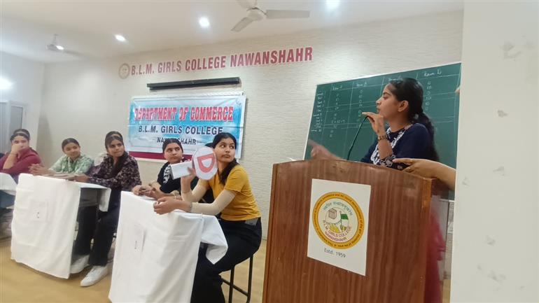 ਬੀ ਐਲ ਐਮ ਗਰਲਜ਼ ਕਾਲਜ ਨਵਾਂ ਸ਼ਹਿਰ ਵਿਖੇ  ਮੋਹਿਤ ਫਾਨਾਂਸ਼ੀਅਲ ਸਰਵਿਸਿਸ ਵੱਲੋਂ ਕੁਇਜ਼ ਮੁਕਾਬਲਾ ਕਰਵਾਇਆ