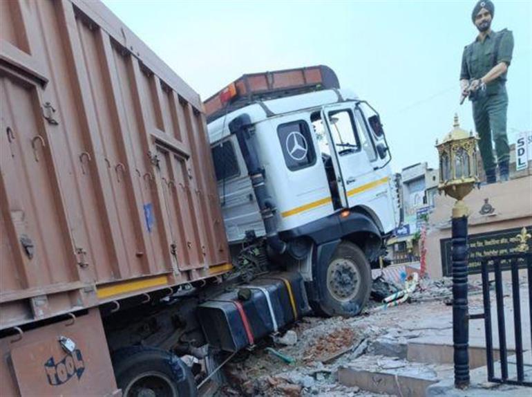 ਰਾਲਾ ਚਾਲਕ ਵੱਲੋਂ ਟਰਾਲੇ ਨਾਲ ਮਾਰੀ ਟੱਕਰ ਨੇ ਬਠਿੰਡਾ ਦੇ ਮਸ਼ਹੂਰ ਫੌਜੀ ਚੌਕ ਦੀ ਜੱਖਣਾ ਪੁੱਟੀ