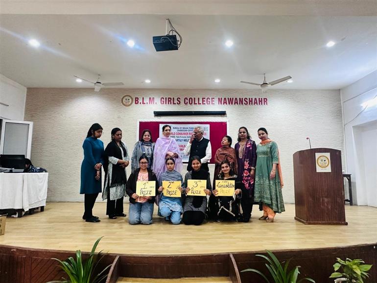 ਨਵਾਂਸ਼ਹਿਰ ਮਨੋਰੰਜਨ ਕਾਲੀਆ) : ਬੀ.ਐਲ.ਐਮ. ਗਰਲਜ਼ ਕਾਲਜ ਵਿੱਚ ਕੰਪਿਊਟਰ ਸਾਇੰਸ ਵਿਭਾਗ ਵੱਲੋਂ ਵਿਸ਼ਵ ਉਪਭੋਗਤਾ ਅਧਿਕਾਰ ਦਿਵਸ ਦੇ ਮੌਕੇ ‘ਤੇ ਇੱਕ ਜਾਣਕਾਰੀਪ੍ਰਦ ਸੈਮੀਨਾਰ ਦਾ ਆਯੋਜਨ ਕੀਤਾ ਗਿਆ। ਇਹ ਸੈਮੀਨਾਰ ਵਿਭਾਗ ਦੀ ਇੰਚਾਰਜ ਪ੍ਰੋ. ਪੂਜਾ ਅਰੋੜਾ, ਪ੍ਰੋ. ਆਸਥਾ, ਪ੍ਰੋ. ਕਿਰਨ, ਪ੍ਰੋ. ਸ਼ਿਵਾਨੀ ਅਤੇ ਪ੍ਰੋ ਕੰਚਨ ਦੀ ਦੇਖ-ਰੇਖ ਹੇਠ BIS ਕਲੱਬ ਦੇ ਸਹਿਯੋਗ ਨਾਲ ਕਰਵਾਇਆ ਗਿਆ। ਇਸ ਮੌਕੇ ਮੁੱਖ ਵਕਤਾ ਵਜੋਂ ਸ਼੍ਰੀ ਫੋਰੈਨ ਚੰਦ (BIS ਚੰਡੀਗੜ੍ਹ) ਹਾਜ਼ਰ ਹੋਏ। ਉਨ੍ਹਾਂ ਨੇ ਵਿਦਿਆਰਥੀਆਂ ਨੂੰ ਵਿਸ਼ਵ ਉਪਭੋਗਤਾ ਅਧਿਕਾਰਾਂ ਬਾਰੇ ਵਿਸਥਾਰ ਨਾਲ ਜਾਣਕਾਰੀ ਦਿੱਤੀ ਅਤੇ ਉਨ੍ਹਾਂ ਦੇ ਹੱਕਾਂ ਅਤੇ ਜ਼ਿੰਮੇਵਾਰੀਆਂ ਬਾਰੇ ਜਾਗਰੂਕ ਕੀਤਾ। ਇਸ ਤੋਂ ਇਲਾਵਾ, ਉਨ੍ਹਾਂ ਨੇ ਵਿਦਿਆਰਥੀਆਂ ਤੋਂ ਇਸੇ ਵਿਸ਼ੇ ਨਾਲ ਸੰਬੰਧਿਤ ਪ੍ਰਸ਼ਨੋਤਰੀ ਮੁਕਾਬਲਾ ਵੀ ਕਰਵਾਇਆ, ਜਿਸ ਵਿੱਚ ਵਿਦਿਆਰਥੀਆਂ ਨੇ ਬੜੇ ਉਤਸ਼ਾਹ ਨਾਲ ਭਾਗ ਲਿਆ। ਮੁਕਾਬਲੇ ਦੇ ਨਤੀਜਿਆਂ ਅਨੁਸਾਰ ਪਹਿਲਾ ਸਥਾਨ ਧਵਨੀ ਅਤੇ ਉਸਦੀ ਟੀਮ ਨੇ ਹਾਸਲ ਕੀਤਾ, ਦੂਜਾ ਸਥਾਨ ਲਵਪ੍ਰੀਤ ਅਤੇ ਉਸਦੀ ਟੀਮ ਨੂੰ ਮਿਲਿਆ, ਜਦਕਿ ਤੀਜਾ ਸਥਾਨ ਗੁਰਲੀਨ ਅਤੇ ਉਸਦੀ ਟੀਮ ਨੇ ਪ੍ਰਾਪਤ ਕੀਤਾ। ਇਸ ਤੋਂ ਇਲਾਵਾ, ਕਿਰਨ ਅਤੇ ਉਸਦੀ ਟੀਮ ਨੂੰ ਸੰਤੋਸ਼ਜਨਕ ਇਨਾਮ ਨਾਲ ਨਵਾਜਿਆ ਗਿਆ। ਕਾਲਜ ਦੀ ਪ੍ਰਿੰਸੀਪਲ ਸ੍ਰੀਮਤੀ ਤਰਨਪ੍ਰੀਤ ਕੌਰ ਵਾਲੀਆ, ਕੰਪਿਊਟਰ ਸਾਇੰਸ ਵਿਭਾਗ ਦੇ ਸਟਾਫ ਅਤੇ ਮੁੱਖ ਵਕਤਾ ਵੱਲੋਂ ਜੇਤੂ ਵਿਦਿਆਰਥੀਆਂ ਨੂੰ ਨਕਦ ਇਨਾਮ ਦੇ ਕੇ ਸਨਮਾਨਿਤ ਕੀਤਾ ਗਿਆ। ਅੰਤ ਵਿੱਚ ਪ੍ਰਿੰਸੀਪਲ ਸ੍ਰੀਮਤੀ ਤਰਨਪ੍ਰੀਤ ਕੌਰ ਵਾਲੀਆ ਨੇ ਆਪਣੇ ਧੰਨਵਾਦੀ ਸ਼ਬਦਾਂ ਰਾਹੀਂ ਮੁੱਖ ਵਕਤਾ, ਸਟਾਫ ਅਤੇ ਵਿਦਿਆਰਥੀਆਂ ਦਾ ਧੰਨਵਾਦ ਕੀਤਾ। ਇਸ ਸੈਮੀਨਾਰ ਵਿੱਚ ਕਾਲਜ ਦੇ ਸਾਰੇ ਸਟਾਫ ਮੈਂਬਰ ਵੀ ਹਾਜ਼ਰ ਰਹੇ ਅਤੇ ਪ੍ਰੋਗਰਾਮ ਨੂੰ ਸਫਲ ਬਣਾਇਆ।