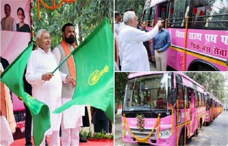 ਬਿਹਾਰ ਦੇ ਮੁੱਖ ਮੰਤਰੀ ਨਿਤੀਸ਼ ਕੁਮਾਰ ਨੇ ਸੋਮਵਾਰ ਨੂੰ ਸੁਚਾਰੂ ਆਵਾਜਾਈ ਲਈ ਦੂਜੇ ਪੜਾਅ ਵਿੱਚ ਔਰਤਾਂ ਲਈ 80 ਗੁਲਾਬੀ ਬੱਸਾਂ ਨੂੰ ਹਰੀ ਝੰਡੀ ਦਿਖਾਈ। ਨਿਤੀਸ਼ ਕੁਮਾਰ ਨੇ 01 ਐਨ ਮਾਰਗ ਤੋਂ 80 ਗੁਲਾਬੀ ਬੱਸਾਂ ਨੂੰ ਹਰੀ ਝੰਡੀ ਦਿਖਾਈ। ਉਨ੍ਹਾਂ ਬਿਹਾਰ ਰਾਜ ਸੜਕ ਆਵਾਜਾਈ ਨਿਗਮ ਦੀਆਂ ਸਾਰੀਆਂ 1065 ਬੱਸਾਂ ਵਿੱਚ ਈ-ਟਿਕਟਿੰਗ ਸਹੂਲਤ ਸ਼ੁਰੂ ਕੀਤੀ। ਬੱਸਾਂ ਨੂੰ ਹਰੀ ਝੰਡੀ ਦਿਖਾਉਣ ਤੋਂ ਪਹਿਲਾਂ ਮੁੱਖ ਮੰਤਰੀ ਨੇ ਬੱਸਾਂ ਦਾ ਨਿਰੀਖਣ ਕੀਤਾ ਅਤੇ ਉਨ੍ਹਾਂ ਵਿੱਚ ਉਪਲਬਧ ਸਹੂਲਤਾਂ ਬਾਰੇ ਪੁੱਛਗਿੱਛ ਕੀਤੀ।