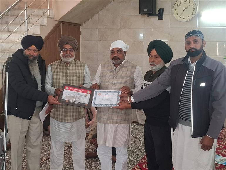 ਸਵਰਗੀ ਬਲਵਿੰਦਰ ਕੌਰ ਦੀਆਂ ਮਰਨ ਉਪਰੰਤ ਅੱਖਾਂ ਦਾਨ ਕਰਨ ਬਦਲੇ ਉਹਨਾਂ ਪਰਿਵਾਰਕ ਮੈਂਬਰਜ਼ ਨੂੰ ਰੋਟਰੀ ਕਲੱਬ ਖਰੜ ਵਲੋਂ ਕੀਤਾ ਗਿਆ ਸਨਮਾਨਿਤ