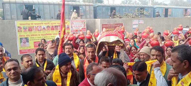 ਸੁਨਾਮ ਉਧਮ ਸਿੰਘ ਵਾਲਾ (ਰਮੇਸ਼ ਗਰਗ) : ਸ਼੍ਰੀ ਰਾਮੇਸ਼ਵਰ ਸ਼ਿਵ ਮੰਦਿਰ ਅਤੇ ਧਰਮਸ਼ਾਲਾ ਪ੍ਰਬੰਧਕ ਕਮੇਟੀ ਵੱਲੋਂ 20 ਜਨਵਰੀ ਨੂੰ ਸ਼੍ਰੀ ਮਦ ਭਾਗਵਤ ਕਥਾ ਅਤੇ ਗਿਆਨ ਯੱਗ ਸਮਾਰੋਹ ਆਯੋਜਿਤ ਕਰਵਾਇਆ ਜਾ ਰਿਹਾ ਹੈ। ਜਿਸ ਦੇ ਤਹਿਤ 108 ਸੁਹਾਗਣਾਂ ਵੱਲੋਂ ਕੱਲਸ਼ ਯਾਤਰਾ ਕੱਢੀ ਗਈ ਇਹ ਕਲਸ਼ ਯਾਤਰਾ ਸ੍ਰੀ ਰਾਮ ਆਸ਼ਰਮ ਮੰਦਿਰ ਦੇ ਵਿੱਚ ਪਹੁੰਚੀ ਅਤੇ ਦੋਨੇ ਸੰਸਥਾਵਾਂ ਦੀ ਕੀਰਤਨ ਮੰਡਲੀਆਂ ਨੇ ਭਗਵਾਨ ਦਾ ਕੀਰਤਨਾ ਰਾਹੀਂ ਗੁਣਗਾਨ ਕੀਤਾ ਸ੍ਰੀ ਰਾਮ ਆਸ਼ਰਮ ਮੰਦਰ ਕਮੇਟੀ ਨੇ ਪ੍ਰਬੰਧਾਂ ਦੇ ਨਾਲ ਨਾਲ ਸਾਰੇ ਸ਼ਰਧਾਲੂਆਂ ਨੂੰ ਜੀ ਆਇਆ ਕਿਹਾ ਸ੍ਰੀ ਰਾਮੇਸ਼ਵਰ ਸ਼ਿਵ ਮੰਦਿਰ ਅਤੇ ਧਰਮਸ਼ਾਲਾ ਪ੍ਰਬੰਧਕ ਕਮੇਟੀ ਦੇ ਪ੍ਰਧਾਨ ਬਲਵਿੰਦਰ ਸ਼ਰਮਾ ਨੇ ਕਿਹਾ ਕਿ ਉਹ ਹਰ ਸਾਲ ਸ੍ਰੀ ਰਾਮ ਆਸ਼ਰਮ ਮੰਦਿਰ ਵਿੱਚ ਕਲਸ਼ ਯਾਤਰਾ ਲੈ ਕੇ ਪਹੁੰਚਦੇ ਹਨ ਅਤੇ ਉਹਨਾਂ ਦੀ ਕਮੇਟੀ ਦੇ ਅਸੀਂ ਧੰਨਵਾਦੀ ਹਾਂ ਸ਼੍ਰੀ ਰਾਮ ਆਸ਼ਰਮ ਮੰਦਿਰ ਕਮੇਟੀ ਦੇ ਪ੍ਰਧਾਨ ਤਰੁਨ ਬਾਂਸਲ ਨੇ ਕਿਹਾ ਸੁਨਾਮ ਸ਼ਹਿਰ ਇੱਕ ਸ਼ਰਧਾਲੂਆਂ ਦਾ ਸ਼ਹਿਰ ਹੈ ਇੱਥੇ ਦੇ ਲੋਕ ਬੜੀ ਹੀ ਸ਼ਰਧਾ ਦੇ ਨਾਲ ਧਾਰਮਿਕ ਕੰਮਾਂ ਵਿੱਚ ਹਿੱਸਾ ਲੈਂਦੇ ਹਨ। ਇਸ ਮੌਕੇ ਵਿਸ਼ੇਸ਼ ਤੌਰ ਤੇ ਪਹੁੰਚੇ ਮਨੀਸ਼ ਸੋਨੀ ਅਤੇ ਦੀਪਿਕਾ ਗੋਇਲ ਨੇ ਕਿਹਾ ਇਸ ਤਰ੍ਹਾਂ ਦੇ ਧਾਰਮਿਕ ਸਮਾਗਮ ਸਮਾਜਿਕ ਬੁਰਾਈਆਂ ਨੂੰ ਦੂਰ ਕਰਦੇ ਹਨ।
