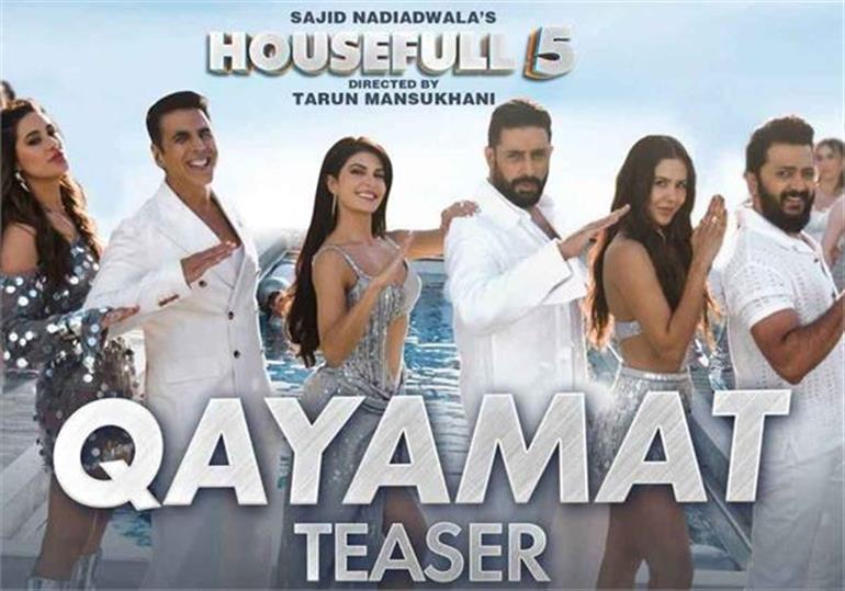 ਟੀਜ਼ਰ ਤੋਂ ਅੰਦਾਜ਼ਾ ਲਗਾਇਆ ਜਾ ਰਿਹਾ ਹੈ ਕਿ ਇਹ ਗੀਤ ਇੱਕ ਪਾਰਟੀ ਗੀਤ ਹੋ ਸਕਦਾ ਹੈ। ਗੀਤ ਦੇ ਬੋਲ 'ਹਾਏ ਕਿਆਮਤ.. ਕਿਆਮਤ.. ਤੂ ਹੈ ਕਿਆਮਤ.. ਪੁਰੀ ਕੀ ਪੂਰੀ ਕਿਆਮਤ ਹੈ' 'ਤੇ ਹਰ ਕੋਈ ਡਾਂਸ ਸਟੈਪ ਕਰਦਾ ਨਜ਼ਰ ਆ ਰਿਹਾ ਹੈ। ਇਸ ਟੀਜ਼ਰ ਨੂੰ ਸਾਂਝਾ ਕਰਦੇ ਹੋਏ ਅਕਸ਼ੈ ਨੇ ਕੈਪਸ਼ਨ ਵਿੱਚ ਲਿਖਿਆ, ਸਭ ਤੋਂ ਧਮਾਕੇਦਾਰ ਪੂਲ ਪਾਰਟੀ ਤੁਹਾਡੇ ਵੱਲ ਆ ਰਹੀ ਹੈ! ਇਹ ਕੋਈ ਆਮ ਕਰੂਜ਼ ਨਹੀਂ ਹੈ, ਸਗੋਂ ਕਿਆਮਤ ਨਾਲ ਭਰਿਆ ਹੋਇਆ ਹੈ! ਕਿਆਮਤ ਗੀਤ ਕੱਲ੍ਹ ਰਿਲੀਜ਼ ਹੋਵੇਗਾ। ਤਰੁਣ ਮਨਸੁਖਾਨੀ ਦੇ ਨਿਰਦੇਸ਼ਨ ਵਿਚ ਬਣ ਰਹੀ ਫਿਲਮ ਹਾਊਸਫੁੱਲ 5 ਵਿਚ ਅਕਸ਼ੇ ਕੁਮਾਰ ਤੋਂ ਇਲਾਵਾ ਰਿਤੇਸ਼ ਦੇਸ਼ਮੁਖ, ਅਭਿਸ਼ੇਕ ਬੱਚਨ, ਜੈਕੀ ਸ਼ਰਾਫ, ਸੰਜੇ ਦੱਤ, ਨਾਨਾ ਪਾਟੇਕਰ, ਚੰਕੀ ਪਾਂਡੇ, ਜੌਨੀ ਲੀਵਰ, ਸੌਂਦਰਿਆ ਸ਼ਰਮਾ, ਚਿਤਰਾਂਗਦਾ ਸਿੰਘ, ਜੈਕਲੀਨ ਫਰਨਾਂਡੀਜ਼, ਸੋਨਮ ਬਾਜਵਾ, ਨਰਗਿਸ ਫਾਖਰੀ, ਫਰਦੀਨ ਖਾਨ, ਸ਼੍ਰੇਅਸ ਤਲਪੜੇ, ਡੀਨੋ ਮੋਰਿਆ, ਨਿਕੇਤਨ ਧੀਰ ਅਤੇ ਰੰਜੀਤ ਲੀਡ ਰੋਲ ਵਿਚ ਨਜ਼ਰ ਆਉਣਗੇ। ਇਹ ਫਿਲਮ 06 ਜੂਨ ਨੂੰ ਸਿਨੇਮਾਘਰਾਂ ਵਿੱਚ ਰਿਲੀਜ਼ ਹੋਵੇਗੀ।