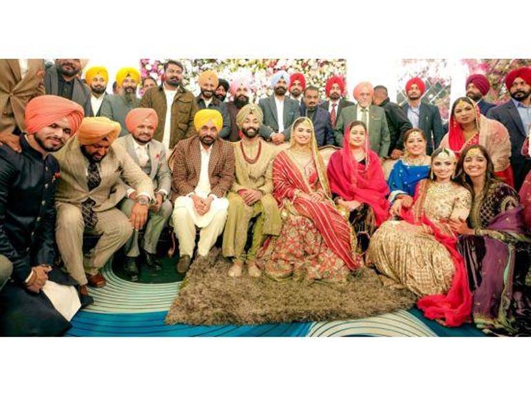 ਚੰਡੀਗੜ੍ਹ/ਰਾਮਪੁਰਾ ਫੂਲ : ਪੰਜਾਬ ਦੇ ਮੁੱਖ ਮੰਤਰੀ ਭਗਵੰਤ ਸਿੰਘ ਮਾਨ ਨੇ ਅੱਜ ਆਪਣੀ ਪਤਨੀ ਡਾ. ਗੁਰਪ੍ਰੀਤ ਕੌਰ ਨਾਲ ਆਮ ਆਦਮੀ ਪਾਰਟੀ ਦੇ ਵਿਧਾਇਕ ਅਤੇ ਮਸ਼ਹੂਰ ਪੰਜਾਬੀ ਗਾਇਕ ਬਲਕਾਰ ਸਿੱਧੂ ਦੀ ਬੇਟੀ ਦੇ ਵਿਆਹ ਸਮਾਗਮ ਵਿੱਚ ਸ਼ਿਰਕਤ ਕੀਤੀ। ਇਸ ਖ਼ੁਸ਼ੀ ਦੇ ਮੌਕੇ 'ਤੇ ਮੁੱਖ ਮੰਤਰੀ ਮਾਨ ਅਤੇ ਉਨ੍ਹਾਂ ਦੀ ਪਤਨੀ ਨੇ ਨਵ-ਵਿਆਹੀ ਜੋੜੀ ਨੂੰ ਨਵੀਂ ਜ਼ਿੰਦਗੀ ਦੀਆਂ ਸ਼ੁਭਕਾਮਨਾਵਾਂ ਦਿੱਤੀਆਂ।