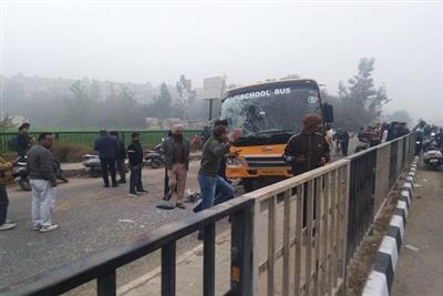 ਖਰੜ 'ਚ 2 ਸਕੂਲੀ ਬੱਸਾਂ ਦੀ ਆਪਸ 'ਚ ਟੱਕਰ, ਸੰਘਣੀ ਧੁੰਦ ਕਾਰਨ ਵਾਪਰਿਆ ਹਾਦਸਾ