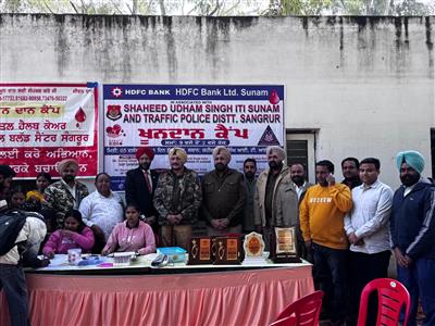 ਟਰੈਫਿਕ ਪੁਲਿਸ ਸੁਨਾਮ ਵੱਲੋਂ ਆਈ, ਟੀ, ਆਈ ਤੇ ਐਚ,ਡੀ, ਐਫ, ਸੀ ਬੈਂਕ ਦੇ ਸਹਿਯੋਗ ਨਾਲ ਖੂਨ ਦਾਨ ਕੈਂਪ ਲਾਇਆ ਗਿਆ