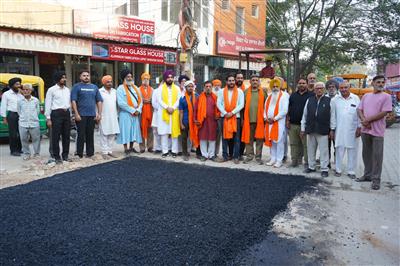 ਕੌਸਲਰ ਰਾਜਵੀਰ ਸਿੰਘ ਰਾਜੀ ਨੇ ਨਿੱਜਰ ਰੋਡ ਤੇ ਸੜਕ ਤੇ ਲੁੱਕ ਪਾਉਣ ਦਾ ਕੰਮ ਕਰਵਾਇਆ ਸ਼ੁਰੂ