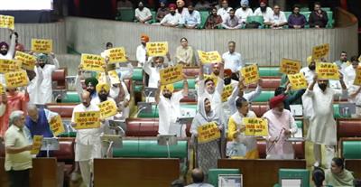 ਪੰਜਾਬ ਵਿਧਾਨ ਸਭਾ 'ਚ PM ਮੋਦੀ ਖ਼ਿਲਾਫ਼ ਨਾਅਰੇਬਾਜ਼ੀ! ਤਖ਼ਤੀਆਂ ਲੈ ਕੇ ਆਏ ਮੈਂਬਰ