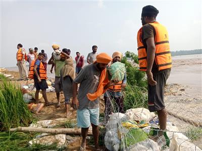 ਬੁਰਜ ਟਹਿਲ ਦਾਸ ਵਿਖੇ ਧੁੱਸੀ ਬੰਨ੍ਹ ’ਚ ਪਏ ਪਾੜ ਨੂੰ ਪੂਰਨ ਦਾ ਕੰਮ ਲਗਾਤਾਰ ਜਾਰੀ