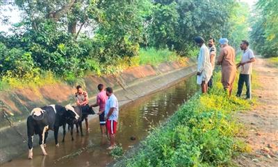 ਸੂਏ 'ਚ ਡਿੱਗੇ 2 ਬੇਸ਼ਹਾਰਾ ਪਸ਼ੂਆਂ ਨੂੰ ਸੇਵਾਦਾਰਾਂ ਨੇ ਬਾਹਰ ਕੱਢਿਆ